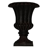 Made of durable fiberglass, this urn, will offer years of enjoyment. Attractive swirl design adds to its aesthetic appeal, accentuated with a rusted antiqued finish. This urn is sure to become an instant showstopper to your home. Enhance your curb appeal by placing the urn by your front door filled with seasonal plants. The fiberglass material is lightweight which allows you to easily move the planter inside during the cooler months. Whether you choose to display it indoors or outdoors, and no matter what you plant in it, this fiberglass planter will fit right into its new home.