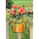 Vinyl coated steel. Adjustable flower box holder adjusts to fit wrought iron, 2x4, or 2x6 deck railings and fences. Designed to hold many types of plastic, wood, and metal flower boxes ranging from 18 inches to 36 inches long. Place two side by side for even longer window boxes. Fits over 90% of available decks and railings.