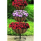 Transform that ho-hum corner of your living room or indoor porch into gorgeous greenery or a colorful cascade of flowers. The CobraCo 3-Tier Floor Planter is made of solid iron and finished in black for style and durability. 3 coconut-lined baskets hang vertically from the fashionable scroll-designed stand. The included baskets measure 12, 14, and 16 inches in diameter. This show-stopping planter adds class to any room. Some assembly required. 16 x 16 x 36 inches. 8 pounds.